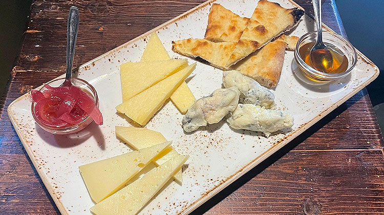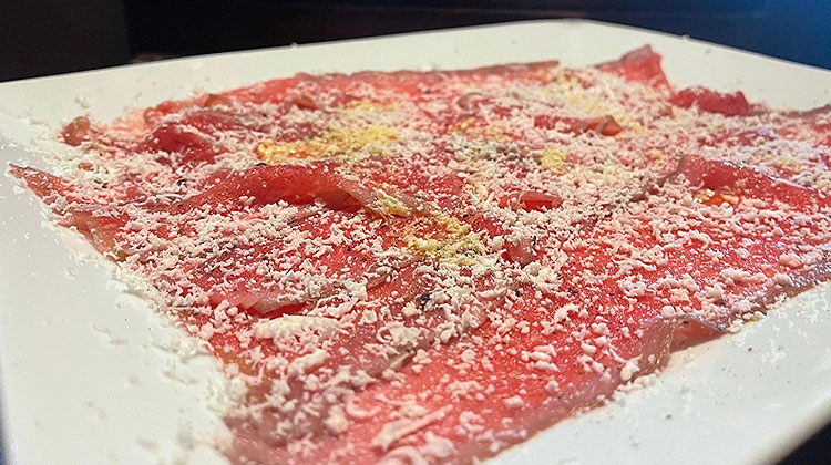 Carpaccio meio escaldado de carne bovina com queijo de cabra
