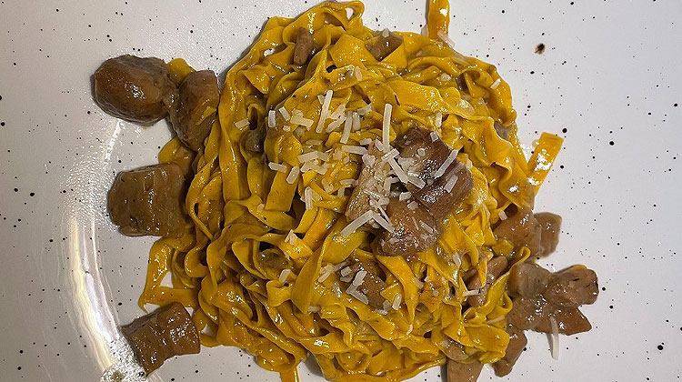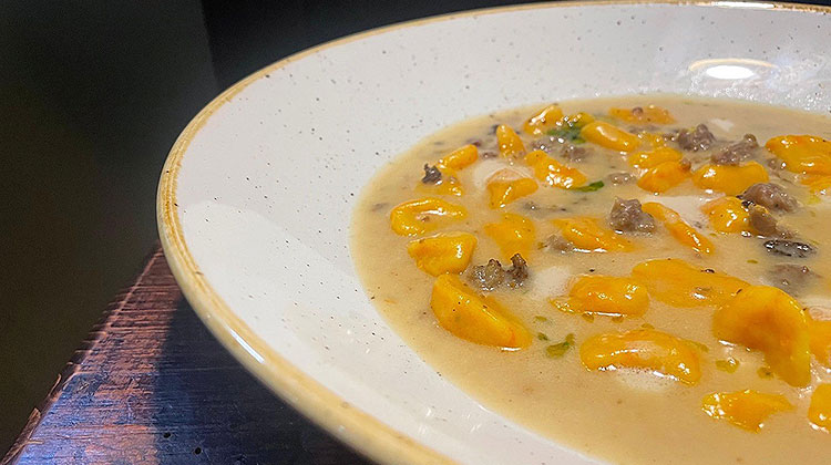 Gnocchi di zucca con crema di taleggio e salsiccia