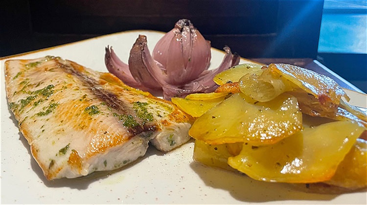 Polvo grelhado em creme de batata com alecrim e ratatouille