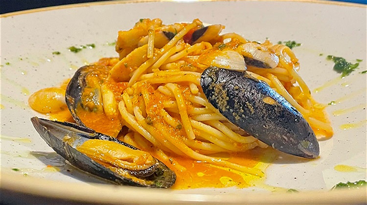 Spaghetti with seafood (mussels, squids, shrimp, clam)